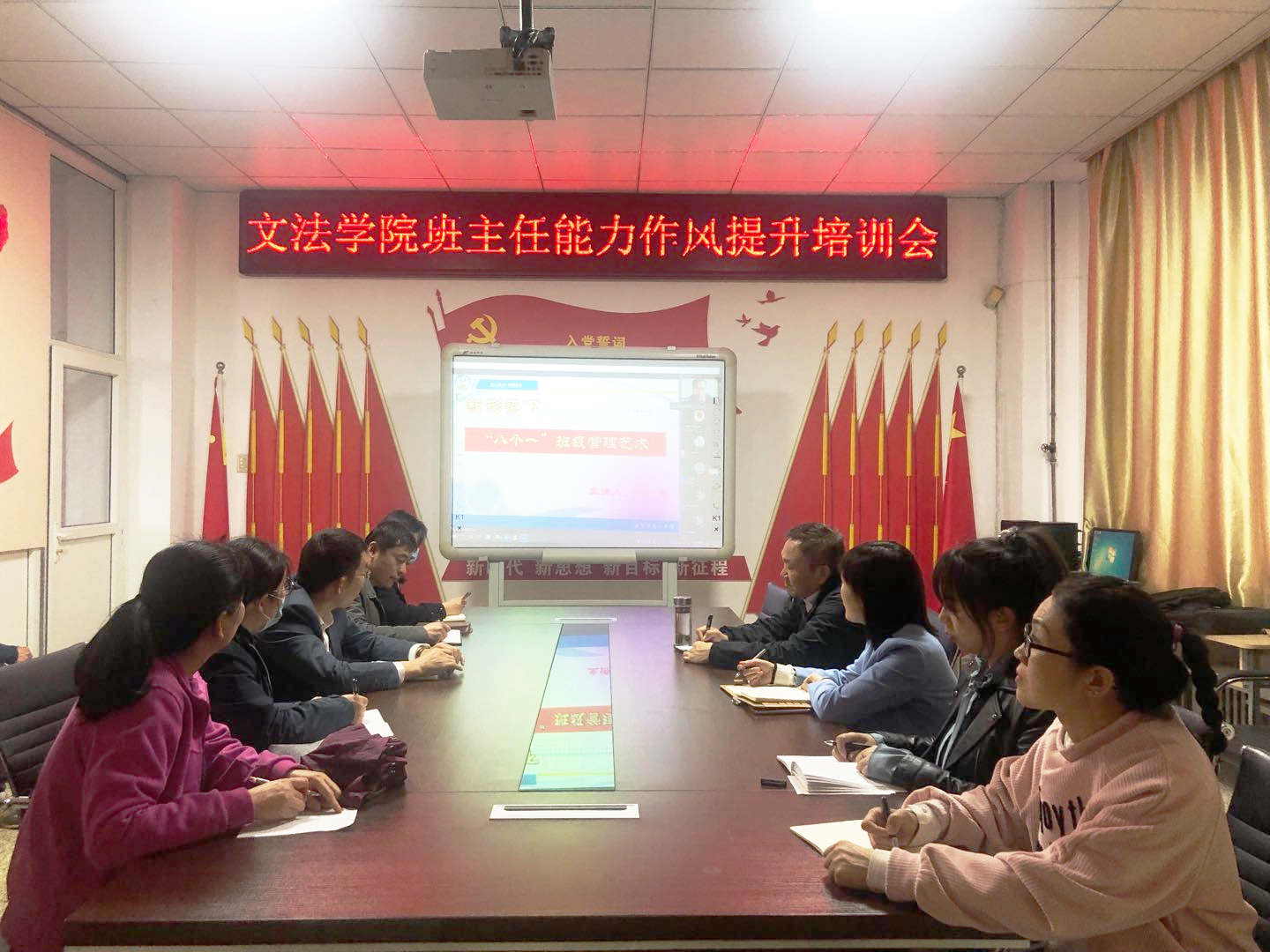 为全面深入开展“能力作风建设年”活动,不断推动教师思想大解放、能力大提升、作风大转变,4月14日下午,文法学院邀请新乡市一中实验学校初中部副主任王三朝作《新形势下“八个一”班级管理艺术》专题讲座。文法学院全体包班联点班主任参加了能力作风提升培训会。