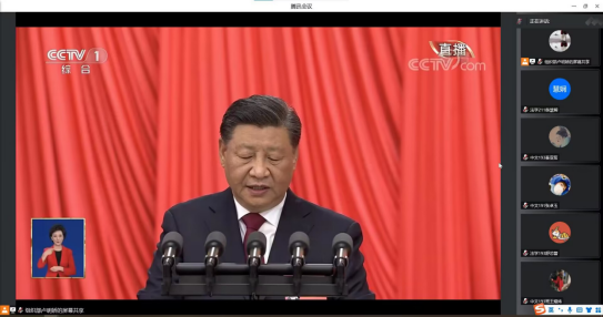 文法学院党委理论中心组成员在学院二楼会议室集中收看大会开幕会直播。此外,学院还组织师生采用集中和分散的形式收看大会开幕会直播。
