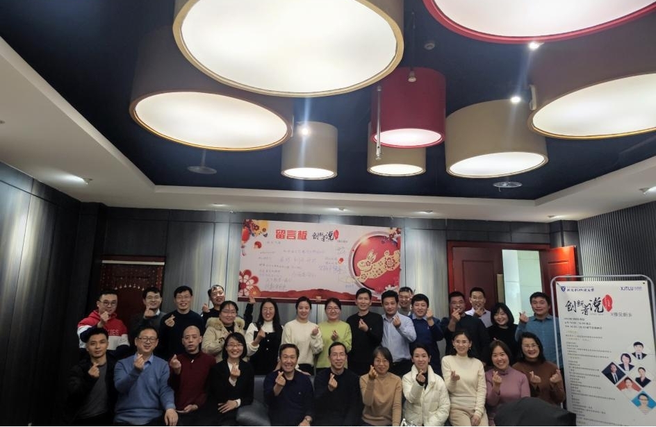 下午时段,活动进入线下交流研讨环节,文法学院周全星院长、食品学院李波书记以及兄弟学院领导来到现场,与来自新乡市6所高校的30余位参会嘉宾和老师进行面对面交流,深度探讨教学创新议题,共同研讨高校教师如何进行智慧教学改革和课堂创新,探索青年教师、骨干教师如何通过教学创新提升自己的职业幸福感和成就感,并合影留念。会上还开展了教学创新“对对碰”、抓阄分享“网络热词”小游戏和教学创新留言寄语等活动。