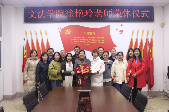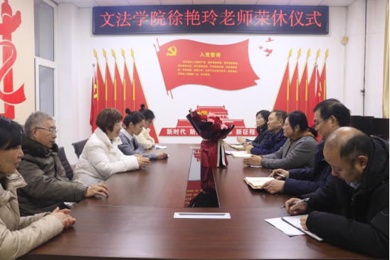 2月23日下午,文法学院在502会议室举行徐艳玲老师荣休仪式。学院党政领导班子、各教研室主任、现当代文学教研室全体教师以及学生代表参加了荣休仪式。仪式由学院党委副书记邵帅主持。