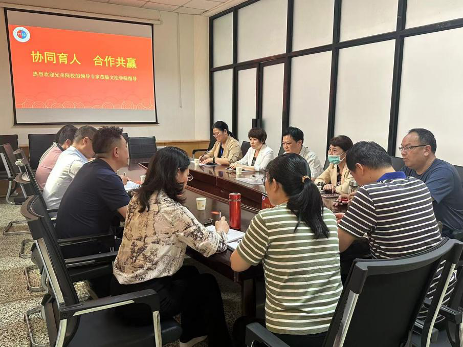 为加强与兄弟高校在研究生联合培养方面的深入合作,推进协同育人与合作共赢,文法学院于5月19日下午三点召开了研究生联合培养交流座谈会。参加座谈会的有黄山学院文学院院长沈昌明、河南牧业经济学院文法学院副院长王伟琴、新乡学院人文学院副院长申红星和赵会莉副教授、新乡学院新闻与传播学院副院长聂绛雯,以及我校文法学院研究生导师代表。会由我校文法学院院长张东旭主持。