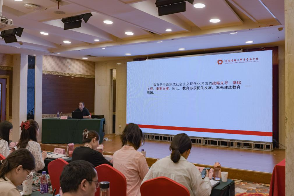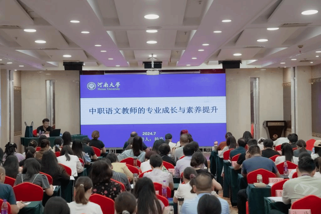 中职语文教师专业素养提升模块是本次培训的重点研修模块,致力于职业学校语文教师专业素养的快速提升。河南大学杨亮教授通过对中职语文教材的深入剖析,巧妙挖掘并重构了其中蕴含的丰富劳动教育资源,并就教师专业竞赛参与及教学研究路径给予了具体指导。杨教授的授课不仅极具针对性,其建议的实用性更是激发了众多学员投身职业教育改革、主动探索教学创新与课题研究的热情。周口理工职业学院刘琼老师则聚焦于语文核心素养视域下的中职语文教学设计与授课艺术,创新性地介绍了“五步朗读法”及多元化学生评价体系,为提升教学质量与学生语文能力提供了新思路。我校周全星教授从职业学校语文教师核心素养的构成要素出发,提出了从语文专家、语文教育专家到语文科研专家三个维度提升教师素养的独到见解,为教师专业成长指明了方向。王振军教授详尽解读了核心素养与工匠精神背景下中职语文课程标准的精髓,帮助学员深刻理解了课程标准的核心理念,以及中职语文课程独有的结构特色与内容呈现方式。张东旭教授则以生动案例为引,展示了如何将中国现当代文学的最新研究成果融入高职院校语文课堂,确保语文核心素养中的审美鉴赏与创造能力在每一堂课中得以体现。此外,刘锋副教授通过对古典诗词格律、时空结构、句法等细致入微的讲解,有效提升了学员在古诗词教学中培养学生文学素养与美学感知力的能力。几位专家的授课,既具有深厚的理论根基,又富含实践价值,为职业学校语文教师开展高效教学与科研活动提供了宝贵的现实指导。