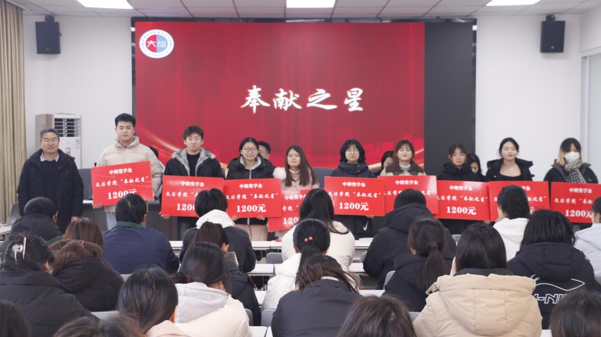文法学院党委副书记田甜宣读中明奖学金获得者表彰的决定。参会领导为中明奖学金获得者颁奖。
