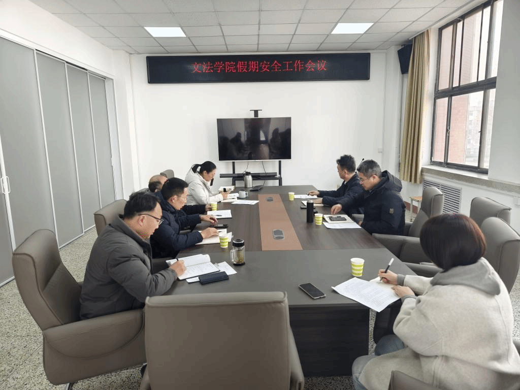 为贯彻落实学校假期安全工作要求,确保学院假期安全,1月14日下午,文法学院党政领导班子在301多功能报告厅召开假期安全工作会议。会议由院党委书记宗辉主持。