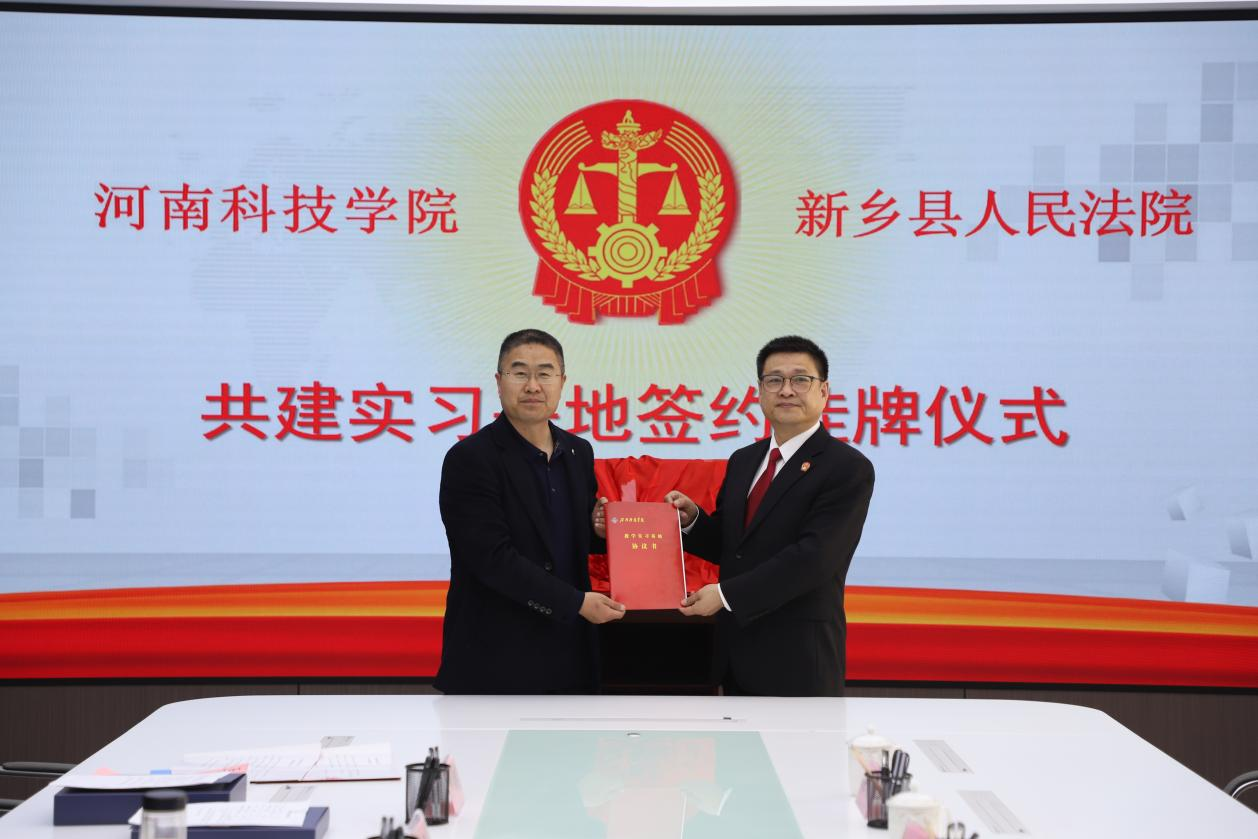 4月8日上午,文法学院与新乡县人民法院、河南龙健律师事务所举行了实习基地签约挂牌仪式。文法学院党委书记宗辉、院长张东旭等人员及两个实习单位的负责人共同参加了签约挂牌仪式。