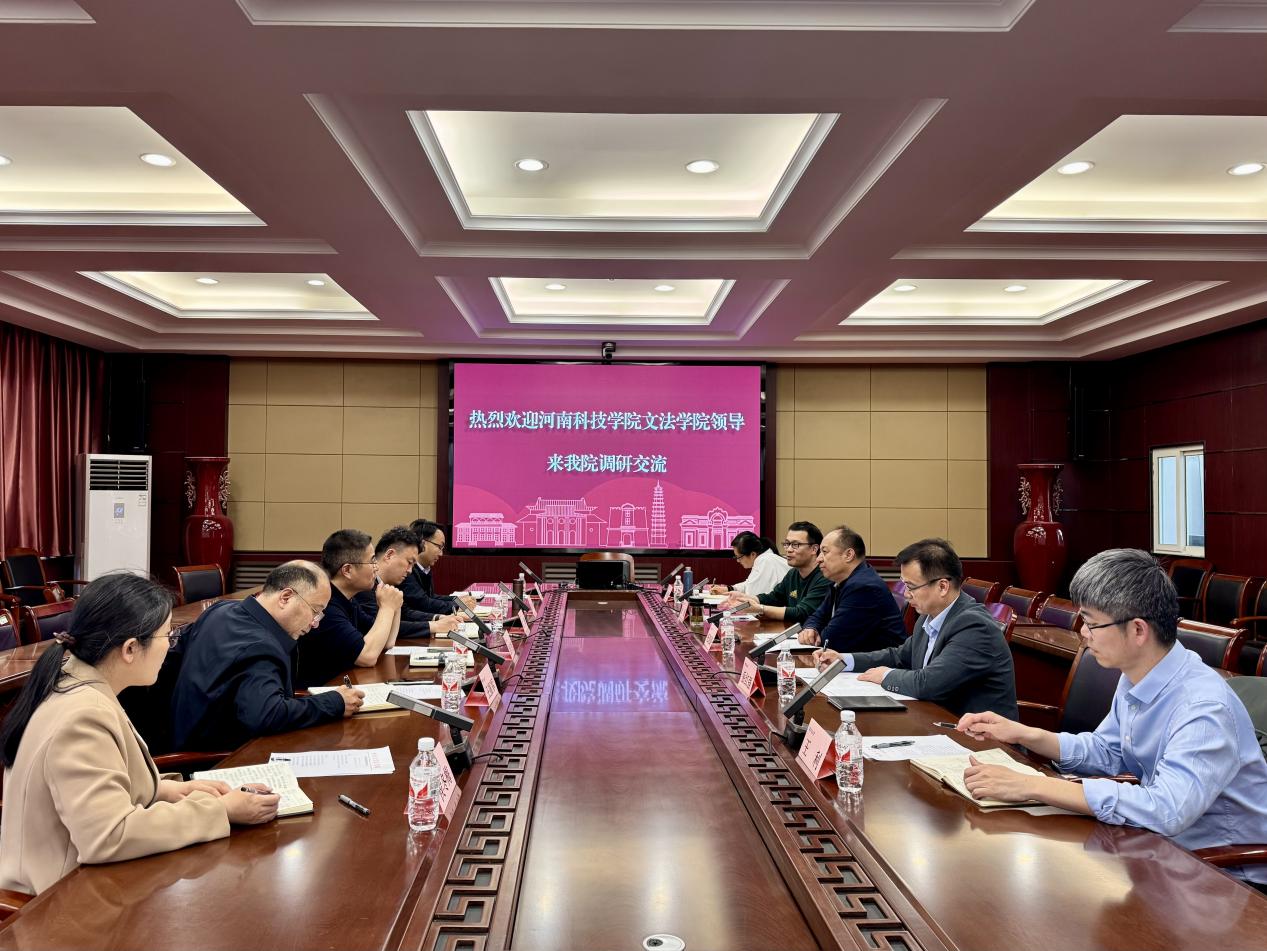 为进一步优化人才培养方案,切实提升人才培养质量,稳步推进2025版人才培养方案的修订工作,4月15日,文法学院党委书记宗辉、院长张东旭、副院长王振军、教学秘书侯冬梅、科研秘书刘琰囡,前往河南大学文学院和法学院进行调研,重点围绕人才培养方案修订、专业学科建设以及法学实验班建设等议题开展调研。