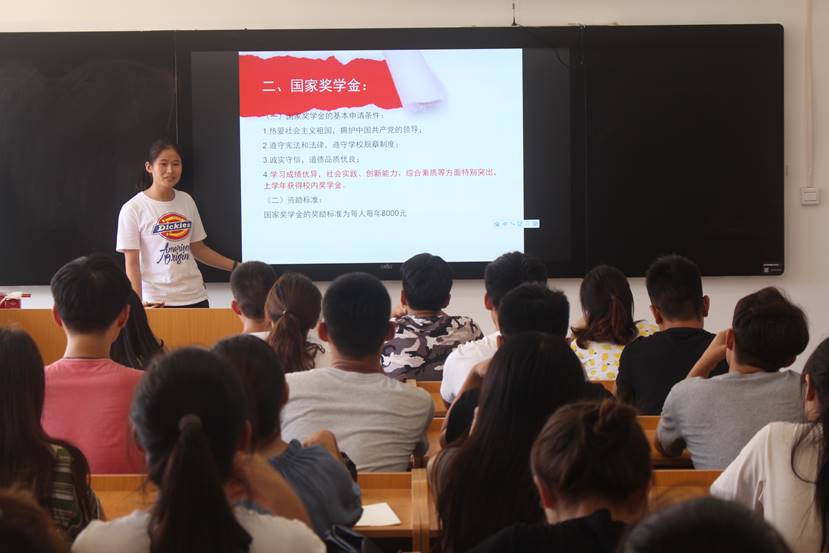 会上,宣讲团成员首先带领大家学习了《学生手册》、《大学生宗教知识手册》等内容,随后以PPT的形式着重对学风建设做出具体要求,要求大家遵守校规校纪,杜绝旷课行为,保持良好的学习状态;强调树立文明形象,遵守文明公约;介绍国家资助政策;在宿舍用电安全、严禁违规电器、防火、防诈骗、校外安全等方面也做了详细说明。