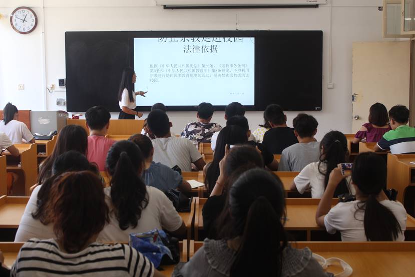 9月3日-9月5日,教育科学学院成立以副书记为组长、各年级辅导员、团委学生会主席团为成员的春晖宣讲团,从学生安全教育、文明教育、宗教“双防”、学风教育、资助政策等5方面,以班级为单位进行知识宣讲活动。