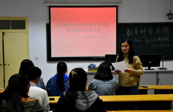为营造良好的英语学习氛围,提高同学们对英语学习的热情。教育科学学院于10月27日-28日分别在三号教学楼、老图书馆四楼教学技能实训室举办以“MY dream,MY life”为主题的英文诵读比赛。比赛分为初赛和决赛两场进行。
