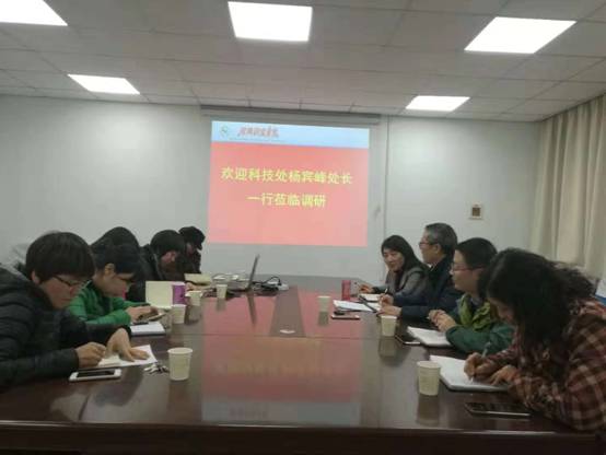 11月16日下午3点半,科技处杨宾峰副处长、张涛科长一行来我院调研,院长李建芹、副院长周启及部分教师代表参加了座谈会。
