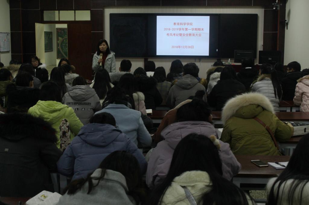 为进一步加强学风考风,严肃考试纪律,我院于12月28日下午在老图书馆四楼教学技能实训室召开学风考风暨安全教育大会。副院长李小丽、全体辅导员老师及各班班长、团支书、学习委员参加会议。辅导员卢璐洁主持会议。