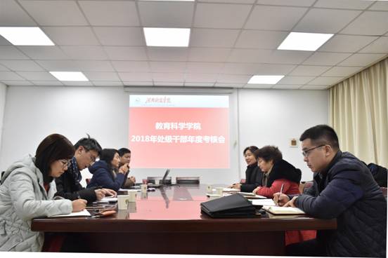 1月4日上午,教育科学学院在零号楼10楼会议室召开2018年度处级干部考核大会。校第六考核工作组宋荷英、李保丽、王魁出席本次会议,学院全体教师参加会议。