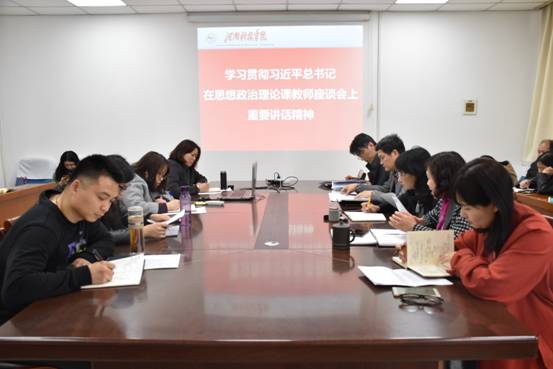 会上,院党委副书记王鲁伟领学了习近平总书记在思政课教师座谈会上的重要讲话精神。院长李建芹指出,作为专业课教师不仅要在教学过程中贯彻落实会议重要讲话精神,还要进一步挖掘学院专业学科的优质特色,挖掘学科中有关学生思想政治教育方面的内容。