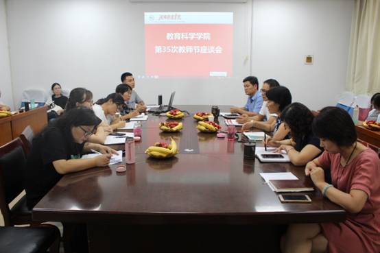 为迎接第35个教师节的来临,9月5日下午,教育科学学院在0号楼10楼会议室召开教师节座谈会。科技处副处长杨宾峰受邀和学院党政领导、教师参加了座谈,座谈会由院长李建芹主持。