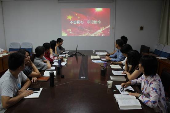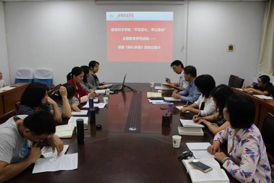9月26日下午,我院在零号楼十楼会议室举行“不忘初心、牢记使命”主题教育,全体教工党员和学生党员代表集体观看了大型历史纪录片《初心永恒》。