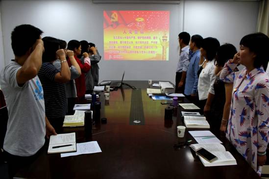 活动中,院党委副书记王鲁伟带领与会党员重温入党誓词,“随时准备为党和人民牺牲一切,永不叛党。”庄严肃穆的誓言掷地有声。王鲁伟强调:“在新时期做一名合格的党员,必须要有坚定的理想信念,必须时刻不忘履行入党时的铮铮誓言,时刻保持共产党员的先进性。”随后,全体党员起立合唱《歌唱祖国》。嘹亮的歌声中传达了对祖国母亲的美好祝福,对美好生活的热情歌颂,也表达了对中国共产党的崇高敬意。