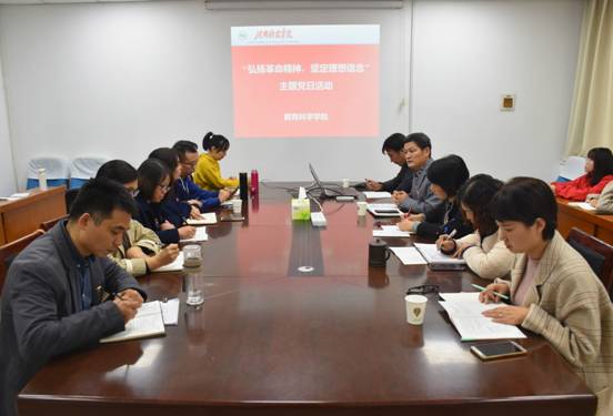 10月17日下午,我院在零号楼十楼会议室举行了以“弘扬革命精神,坚定理想信念”为主题的党日活动。全体教工党员、学生党员代表30余人参加活动。会议由院党委书记张涛主持。