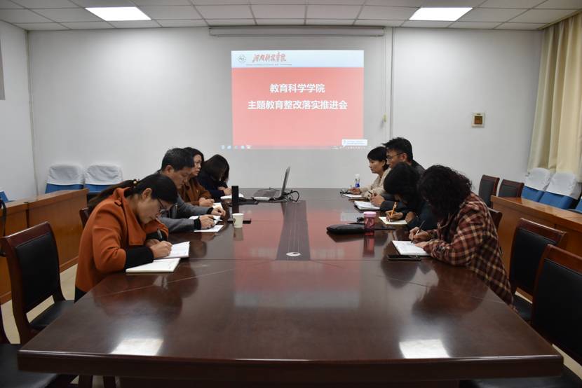 11月6日上午,我院在零号楼十楼会议室召开主题教育整改落实推进会,学院全体党政领导及党支部书记参加会议。