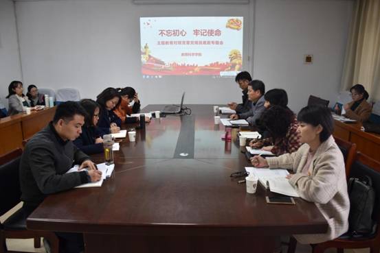 11月7日下午,我院在零号楼十楼会议室召开“不忘初心、牢记使命”主题教育对照党章党规找差距专题会。学院全体教师参加会议,会议由院党委副书记王鲁伟主持。