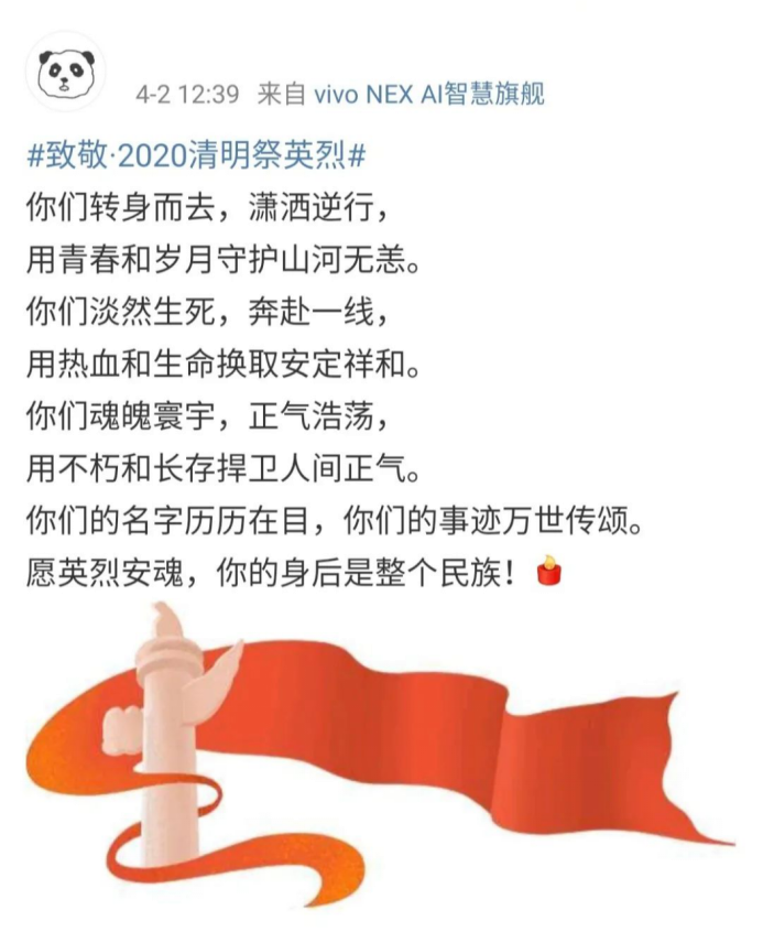 线上,我院全体党员、入党积极分子利用微博平台积极发起“致敬·2020清明祭英烈”“清明祭英烈,我想对您说”等话题讨论,并邀请本团支部团员青年共同参加。字里行间表达对英烈的崇高敬意,展现出新时代青年将英烈精神融入生活实践的良好风貌,让英烈精神不断传承。