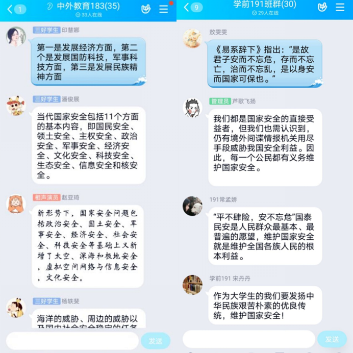 线上,我院组织全体学生参与国家安全知识竞赛,同学们积极了解相关知识,认真答题,并利用微博平台发起“全民国家安全教育日”“国家安全在我身边”等话题讨论。家是最小国,国是千万家。“国泰”方能“民安”,在维护国家安全上,人人都不是局外人、旁观者,而是人人有责,更需人人尽责。