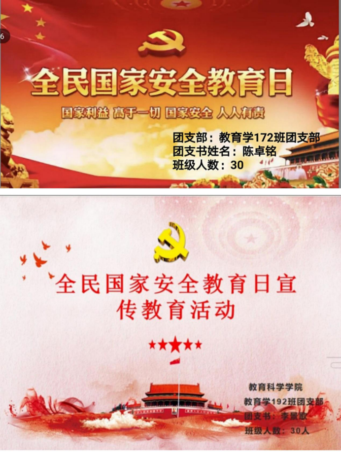 4月14日—15日,我院组织各团支部开展“全民国家安全教育日”线上宣传教育活动。活动由各团支部书记主持。活动上,各团支部书记详细讲解了国家安全教育的相关知识,强调维护国家安全的重要性,并组织学生就“国家安全”问题展开讨论。各团支部学生纷纷表示,要以实际行动维护国家安全,勠力同心筑牢国家安全的重要防线。