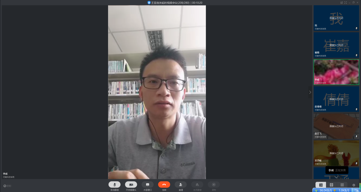 会上,李威首先向大家介绍了我院今年考研学生录取情况,勉励同学们制定考研计划,找到合适的学习方法,在家认真备考,坚定信心。随后,苏灵敏、赵倩倩、赵巧飞、崔嘉四位同学分别从自身的考研经历出发,围绕“如何选取院校和专业、学硕与专硕的区别、考研课程复习方式、特殊时期怎样保持高效复习、考研过程中心态的调整”等方面谈了自己的亲身体验和感受。此外,她们分别强调了英语以及专业课的时间分配和复习方法,分享了不同考研资料的获取途径,并讲解了有关初试和复试的相关流程,让有考研计划的同学有了进一步的了解。在提问环节,同学们就自己在学习英语和专业课时遇到的问题向学姐们提出了困惑,学姐们对其进行了细致而全面的解答。