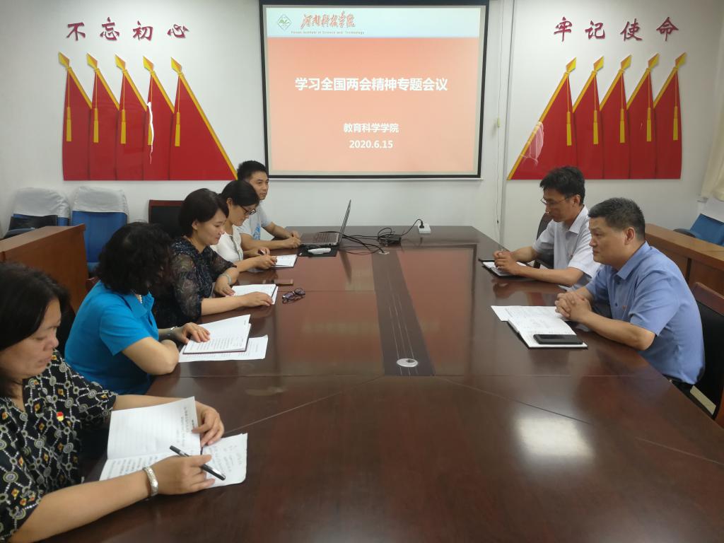 6月15日下午,我院在0号楼10楼会议室召开“学习全国两会精神”专题会议,院党委中心组成员、办公室主任、团委书记和教工党支部书记参加了会议。院党委书记张涛主持会议。