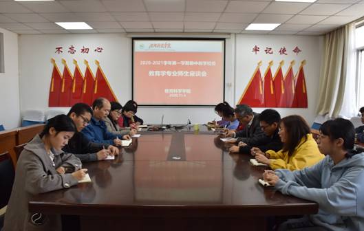 为全面了解我院本学期教学运行情况,进一步加强和规范教学过程管理,提高教学质量,及时发现和解决教学中存在的问题,促进教学常规环节的扎实推进,11月5—6日,我院于0#楼十楼会议室分别召开了2020-2021学年第一学期期中教学检查学生座谈会。院长杨宾峰、副院长王晶、教育系主任李红义、教研室主任钱晓玲、郝一宁、杨红旻、于洪姣、教学秘书郭庆霞及部分教师代表出席了座谈会,2018、2019、2020级各班班委代表参加了座谈会。