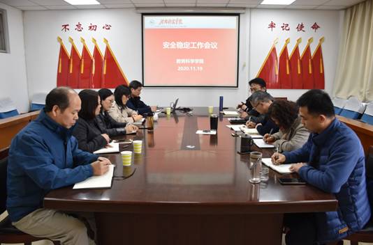 11月19日下午,我院在零号楼十楼会议室召开会议,专题安排部署安全稳定工作,学院班子成员及科级以上干部参加会议。
