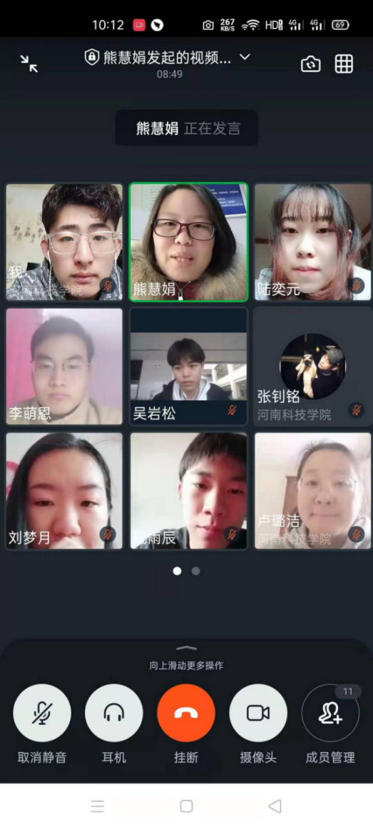 会上,熊慧娟就钉钉打卡、战疫日记、寒假社会实践、“万名学生品读红色家书”等活动进行安排部署。着重强调了如实填报个人健康信息的重要性,要求大家提高防疫意识减少外出,做好日报告、数据分析、注重中高风险地区变化、打卡情况核实、做好疫情工作日志记录等。同时提醒同学们在社会实践中坚定理想信念、练就过硬本领,进一步增强“四个意识”、坚定“四个自信”、做到“两个维护”,充分利用好假期品读红色家书,传承红色基因,助力中国梦。