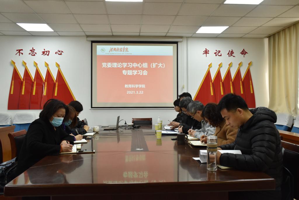 院党委书记张涛就开展好党史学习教育提出三点要求:一是统一思想、提高认识,深刻领会党史学习教育的重大意义。开展党史学习教育,是贯穿全年的一项重大政治任务,围绕“为什么学”“学什么”“怎么学”,在思想上充分认识到开展党史学习教育的重大历史意义和现实意义。二是精心部署、周密组织,制定学院学习计划。结合学院党委理论学习中心组计划、全体教职工政治理论学习、支部工作计划等制定学院党史学习教育计划。三是组织领导、压实责任,切实提高学习成效。学院领导班子成员要带头学,要把党史学习教育抓在日常、融入经常,结合自身工作和专业学,力争将党史学习教育和业务管理、教学等工作融会贯通,切实提高工作成效。
