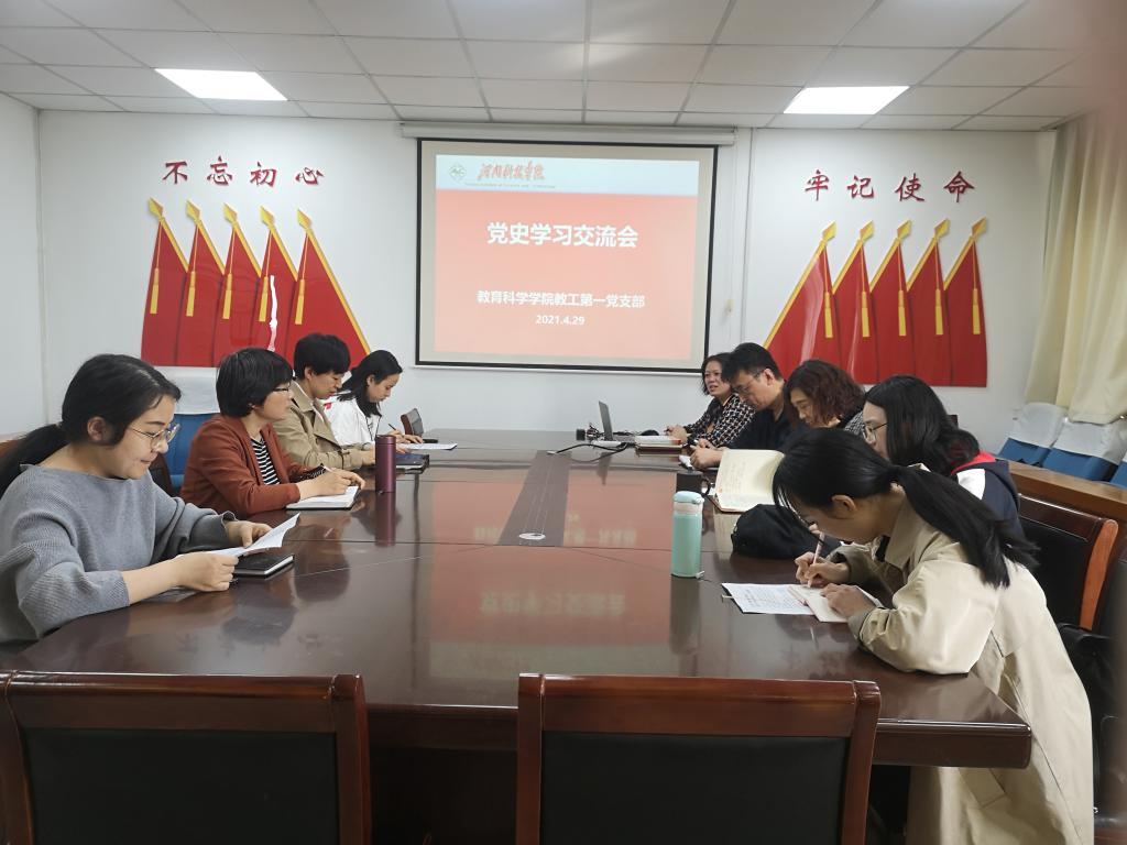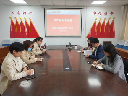 4月29日下午,我院教工第一党支部在零号楼十楼会议室召开了党史学习研讨会。会议由党支部书记郭庆霞主持,支部9名党员参加此次会议。