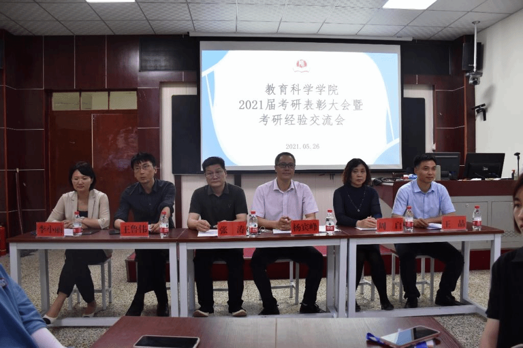 首先,王晶介绍与会领导并宣布会议开始。李小丽宣读《教育科学学院关于对2021届考取研究生个人的表彰决定》,希望受表彰学生戒骄戒躁,心系母校,继续奋斗。与会领导为考研学生代表颁奖,并合影留念。