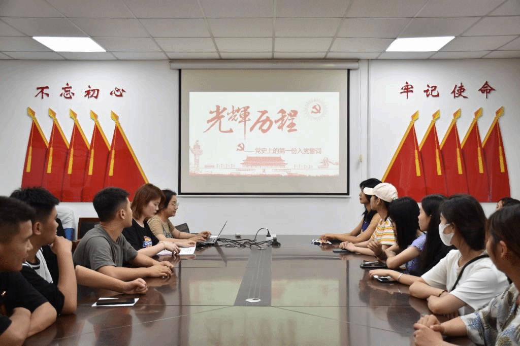 为迎接建党100周年,深入开展党史学习教育,进一步强化党性教育、加强党性修养、筑牢思想之基。6月16日,我院学生第一党支部书记卢璐洁于零号楼十楼会议室做题为《辉煌历程—党史上第一份入党誓词》专题党课,学生第一党支部全体党员到场聆听学习。