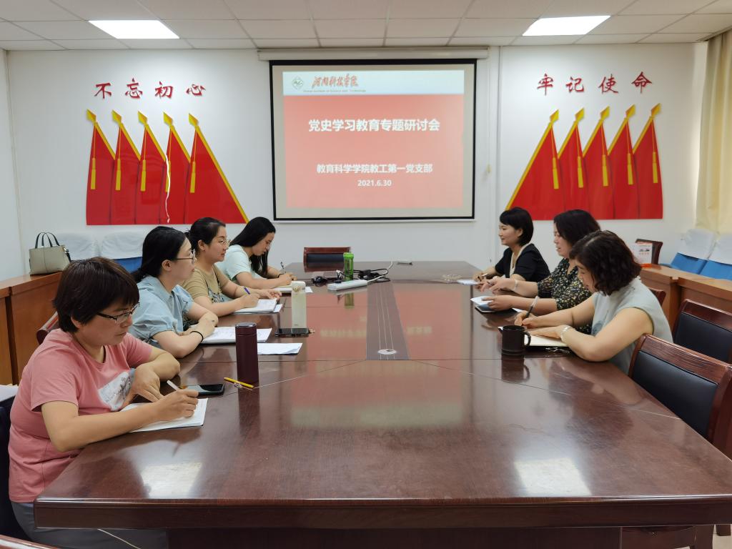 6月30日,我院教工第一党支部在零号楼十楼会议室召开了党史学习教育专题研讨会。会议由支部书记郭庆霞主持,支部全体党员参加了此次会议。
