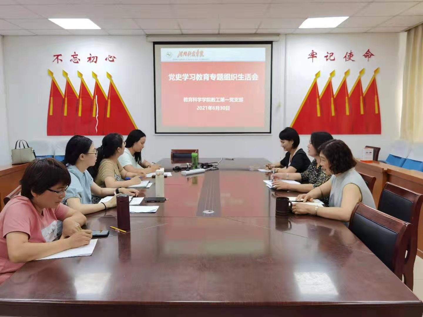 6月30日,我院教工第一党支部在零号楼十楼会议室召开了党史学习教育专题组织生活会。会议由支部书记郭庆霞主持,支部全体党员参加了此次会议。