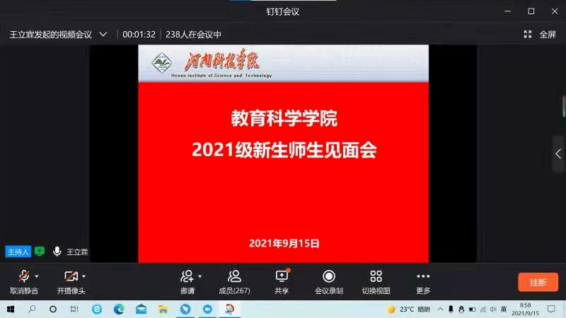9月15日上午,我院于线上召开2021级新生师生见面会。院党委书记张涛、院长杨宾峰、党委副书记王鲁伟、副院长李小丽、王晶、院团委书记熊慧娟、团委副书记卢璐洁及各年级辅导员参加此次会议。会议由王晶主持。