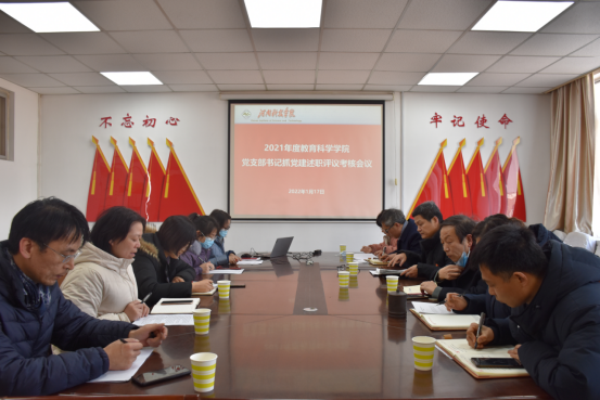 按照学校《关于开展2021年度党支部书记抓党建述职和党支部“双评议”工作的通知》要求,1月18日下午,教育科学学院在零号楼10楼会议室召开2021年度党支部书记抓党建述职评议考核会。学院班子成员、各党支部书记参加了会议。会议由院党委书记张涛主持。