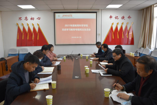 1月18日下午,教育科学学院在零号楼10楼会议室召开2021年度党史学习教育专题民主生活会。第四轮校内巡察第二巡察组组长宋荷英、副组长王吉田到会指导,学院班子成员参加会议。会议由院党委书记张涛主持。
