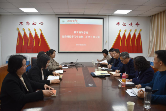3月3日下午,教育科学学院在零号楼十楼会议室召开党委理论学习中心组(扩大)学习会,全体党委委员、党支部书记参加会议。会议由院党委书记张涛主持。