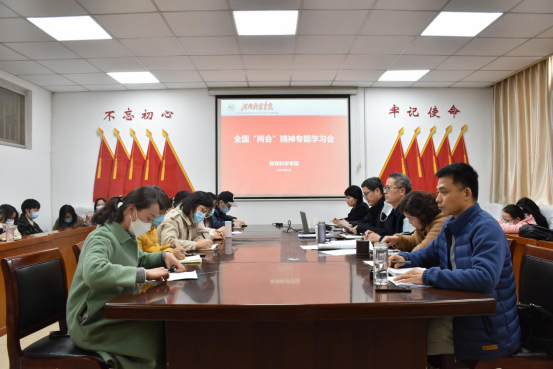 3月31日下午,教育科学学院在零号楼十楼会议室召开全国“两会”精神专题学习会。学院党政班子成员及全体教职工参加会议。会议由院党委书记张涛主持。