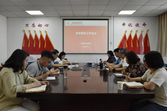 5月5日下午,教育科学学院在0号楼10楼会议室召开安全稳定工作会议。学院班子成员、党支部书记、辅导员参加会议。会议由院党委书记张涛主持。