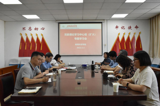 5月5日下午,教育科学学院于0号楼10楼会议室召开党委理论学习中心组(扩大)专题学习会。学院班子成员、党支部书记、辅导员参加会议,会议由院党委书记张涛主持。