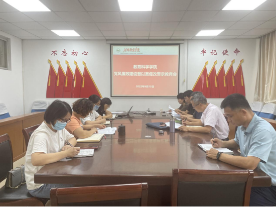 9月15日,教育科学学院在零号楼十楼会议室召开党风廉政建设暨以案促改警示教育工作会议。学院党政领导、全体党支部书记、辅导员参加了会议,会议由院党委书记张涛主持。