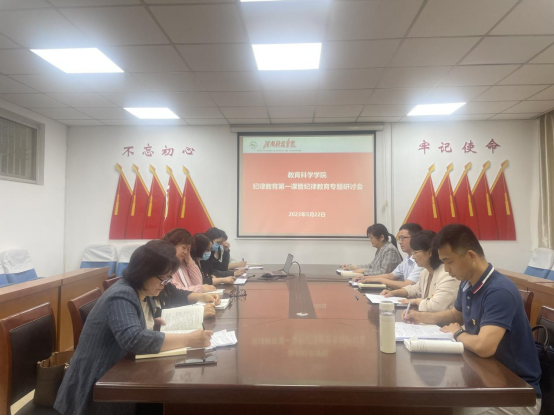 按照校纪委关于在全校党员中开展“明方向、立规矩、正风气、强免疫”专题纪律教育工作方案要求,5月22日下午,教育科学学院党委在0号楼10楼会议室召开纪律教育第一课暨纪律教育专题研讨会。教育科学学院党政领导、各党支部书记、副书记,各年级辅导员参加。