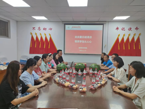 为进一步推动学习贯彻习近平新时代中国特色社会主义思想主题教育走深走实,增强暑期在校研究生的获得感、幸福感、安全感,7月11日下午,教育科学学院在零号楼10楼会议室开展暑期在校研究生慰问活动。教育科学学院党委书记刘晓杰、院长李小丽、副院长高佳、导师代表孟景舟、研究生秘书李会文以及暑期在校研究生参加本次活动。