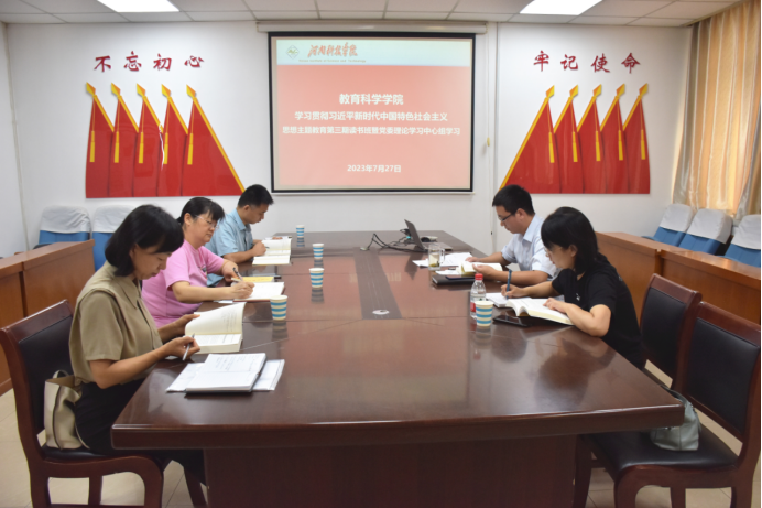 7月27日,教育科学学院在零号楼十楼会议室举办学习贯彻习近平新时代中国特色社会主义思想主题教育第三期读书班暨党委理论学习中心组集中学习会。会议围绕《习近平著作选读》(第二卷)中收录的重要文章进行研学。学院党政领导班子全体成员参加了会议。会议由院党委书记刘晓杰主持。