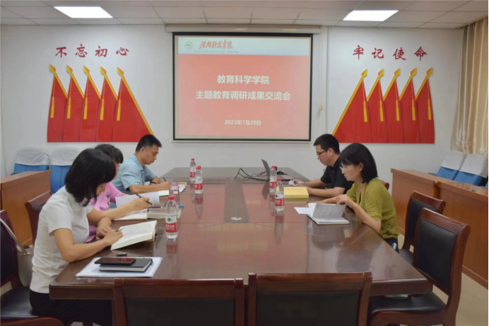 7月28日下午,教育科学学院在零号楼十楼会议室召开学习贯彻习近平新时代中国特色社会主义思想主题教育调研成果交流会。学院党政领导班子全体成员参加会议。院党委书记刘晓杰主持会议。