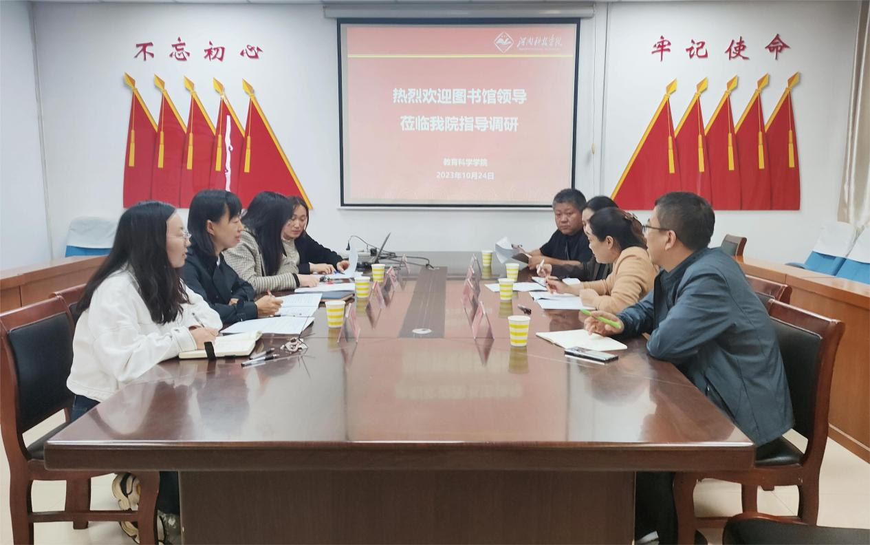10月24日下午,图书馆副馆长李辉、郑树景带领相关工作人员莅临教育科学学院,在0#楼10楼会议室开展图书资料室建设工作调研会。教育科学学院副院长刘秋云、高佳,资料室管理人员等一同参加,会议由高佳主持。